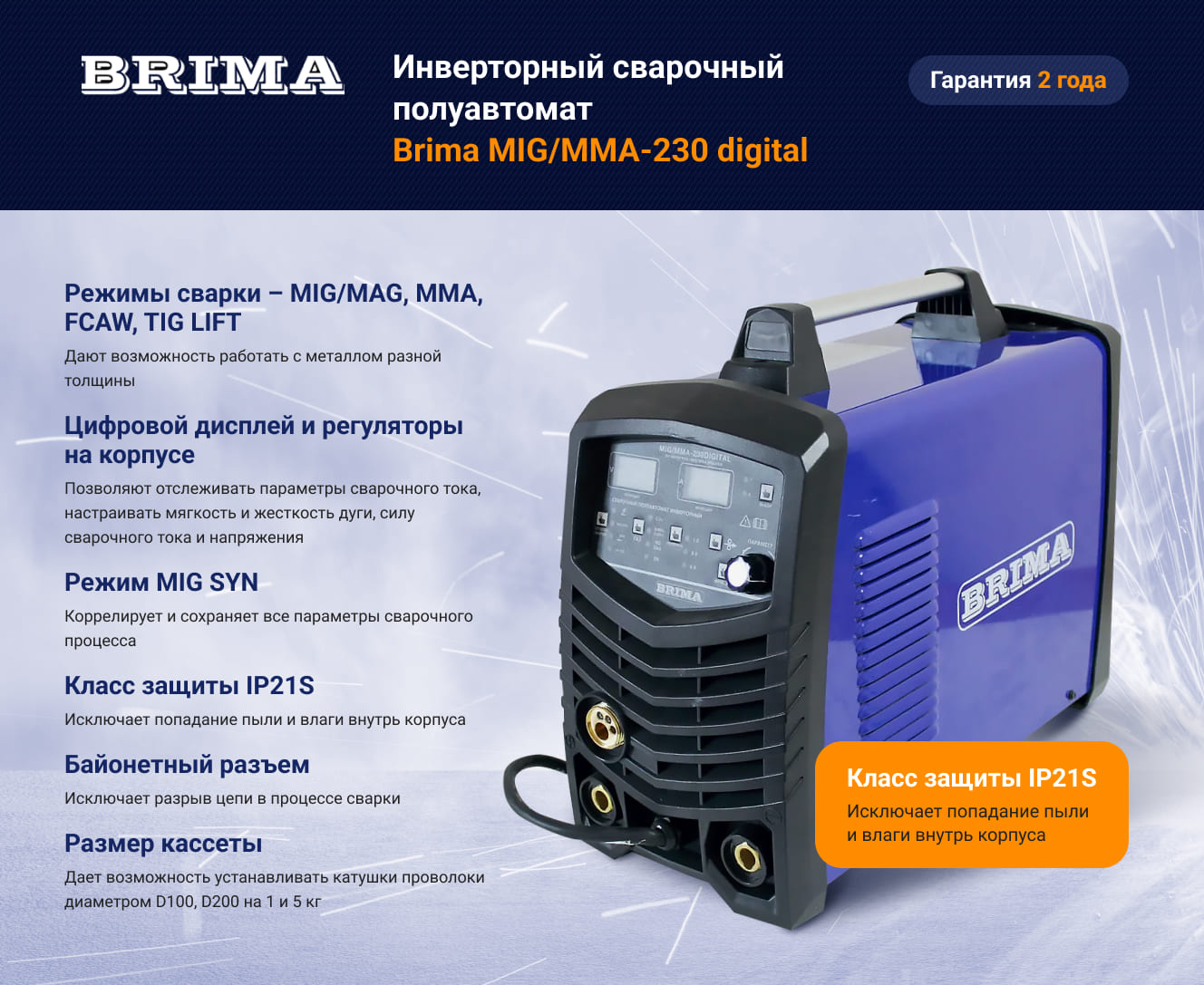 Полуавтомат Brima MIG/MMA-230 220В DIGITAL БП-00000595