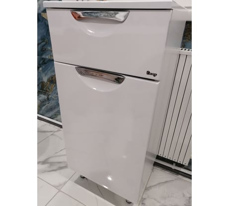 Полупенал напольный Еmmy МИЛЛИ 40 с ящиком с врезными ручками. Корпус выполнен из ЛДСП, фасад из качественного и высокоплотного МДФ с пленкой ПВХ белого цвета. Петли с доводчиками с левой стороны. В шкафчике располагается 1 стеклянная полочка. Поставляется в собранном виде. Дополнить комплект можно так-же изделиями из коллекции МИЛЛИ.