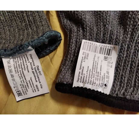 Полушерстяные, теплые перчатки судя по ярлычку сделаны в России. Первая пара отслужила зиму верой и правдой, несколько стирок и небольшие ремонты - штопка потертостей в местах ладоней.
