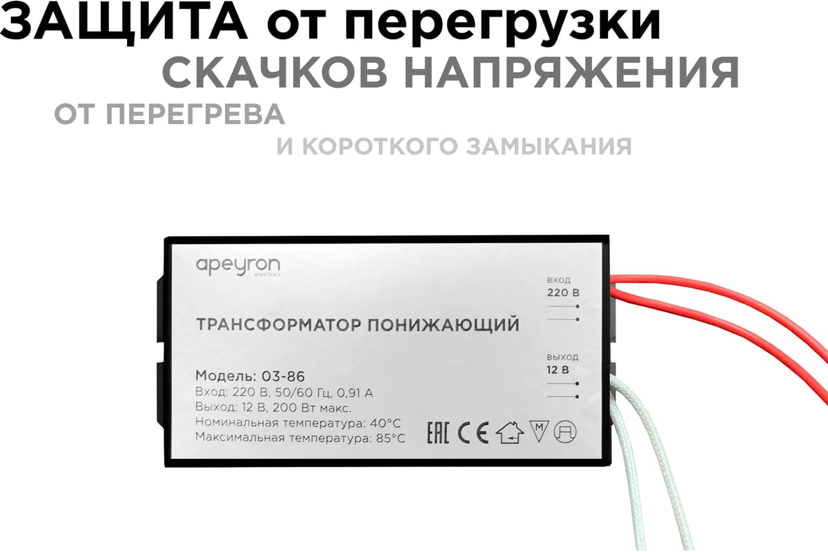 Вопросы и ответы о трансформаторе Apeyron 12В, 70-200Вт, 105х48х27мм, металл, черный 03-86