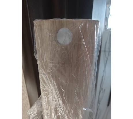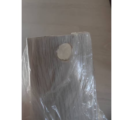 Отсутствие ума у продавца, решившего просверлить дырку с одного края порога, видимо, для подвешивания на крючок в витрине