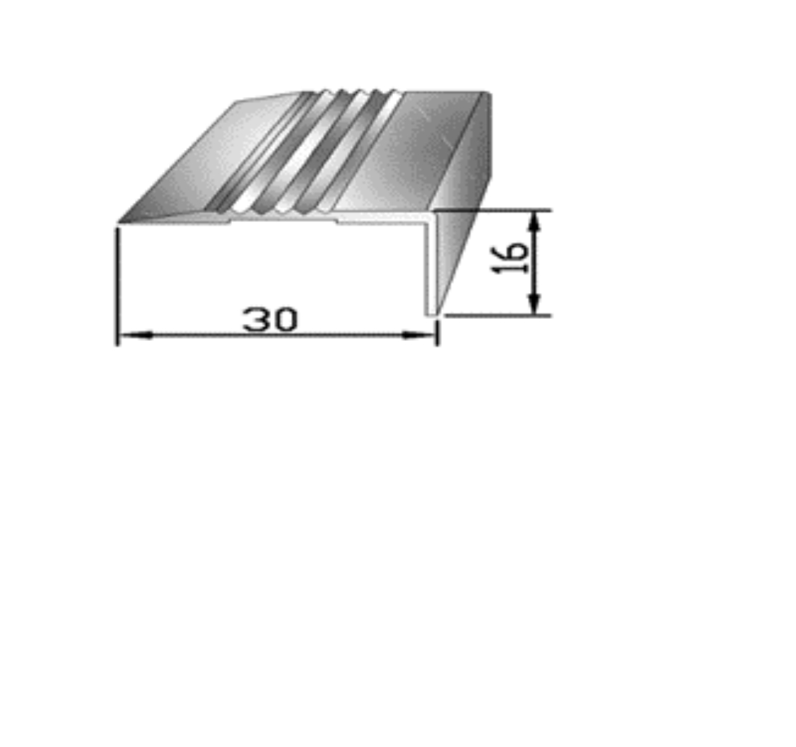 Г-образный Порог-угол шириной 30х16 мм и длиной 1000 мм. Поставляется в индивидуальной упаковке с саморезами и дюбелями. Порог предназначен для установки на углах ступеней лестниц и пандусов, для надежной защиты углов ступеней от постоянного механического воздействия, продлевая этим их срок службы.