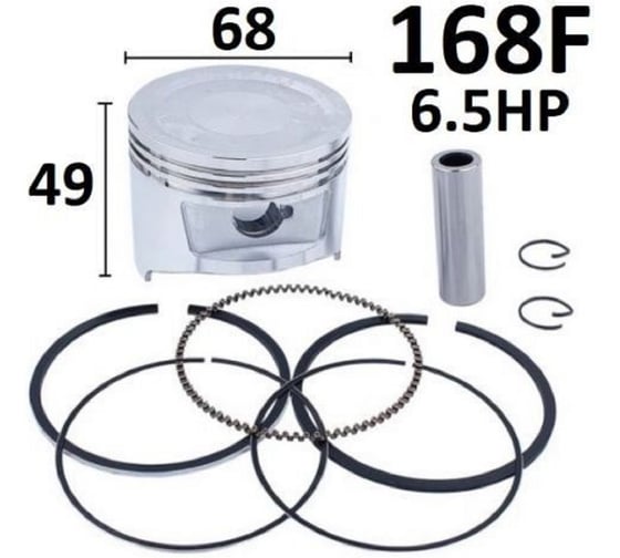 - Поршень 68 мм двигателя 168F 6,5 лс комплект