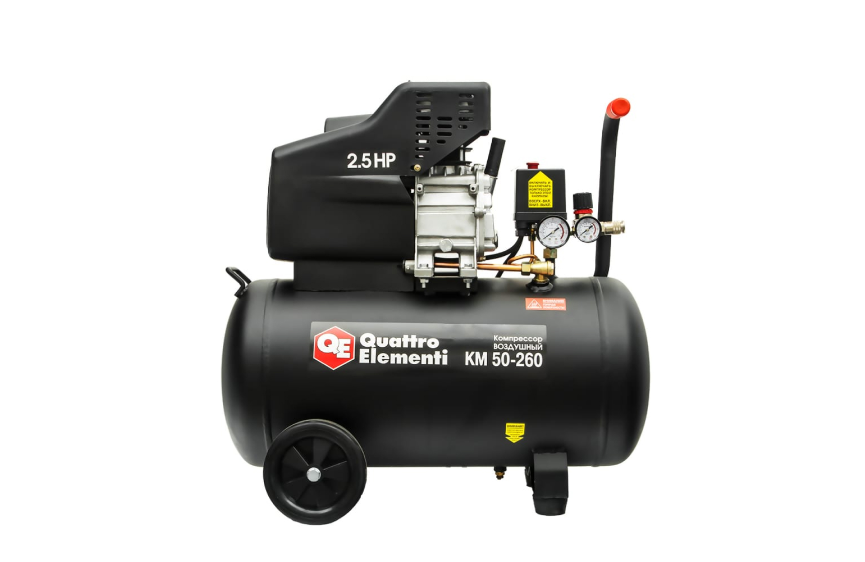 - Мобильная конструкция За счет колес и ручки компрессор легко перемещать по рабочему участку или выкатывать на улицу