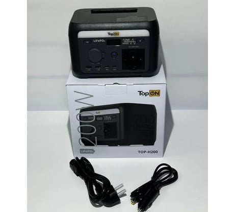 Портативная электростанция TopOn LFP 200 Вт, розетка 220 В, авторозетка 12.6 В, 2 Type-C, 2 USB, фонарь, EPS TOP-H200