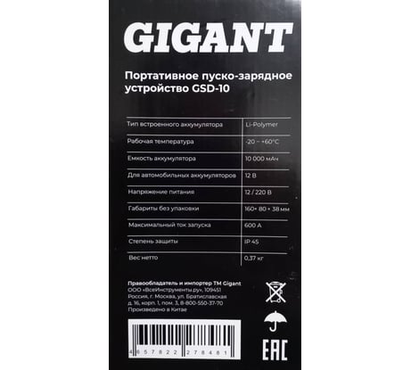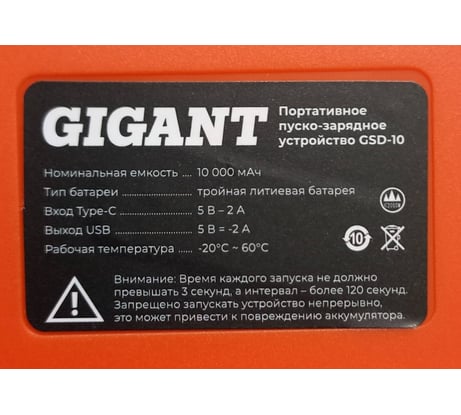 Отзывы о портативном пуско-зарядном устройстве Gigant 13000 mAh GSD-13