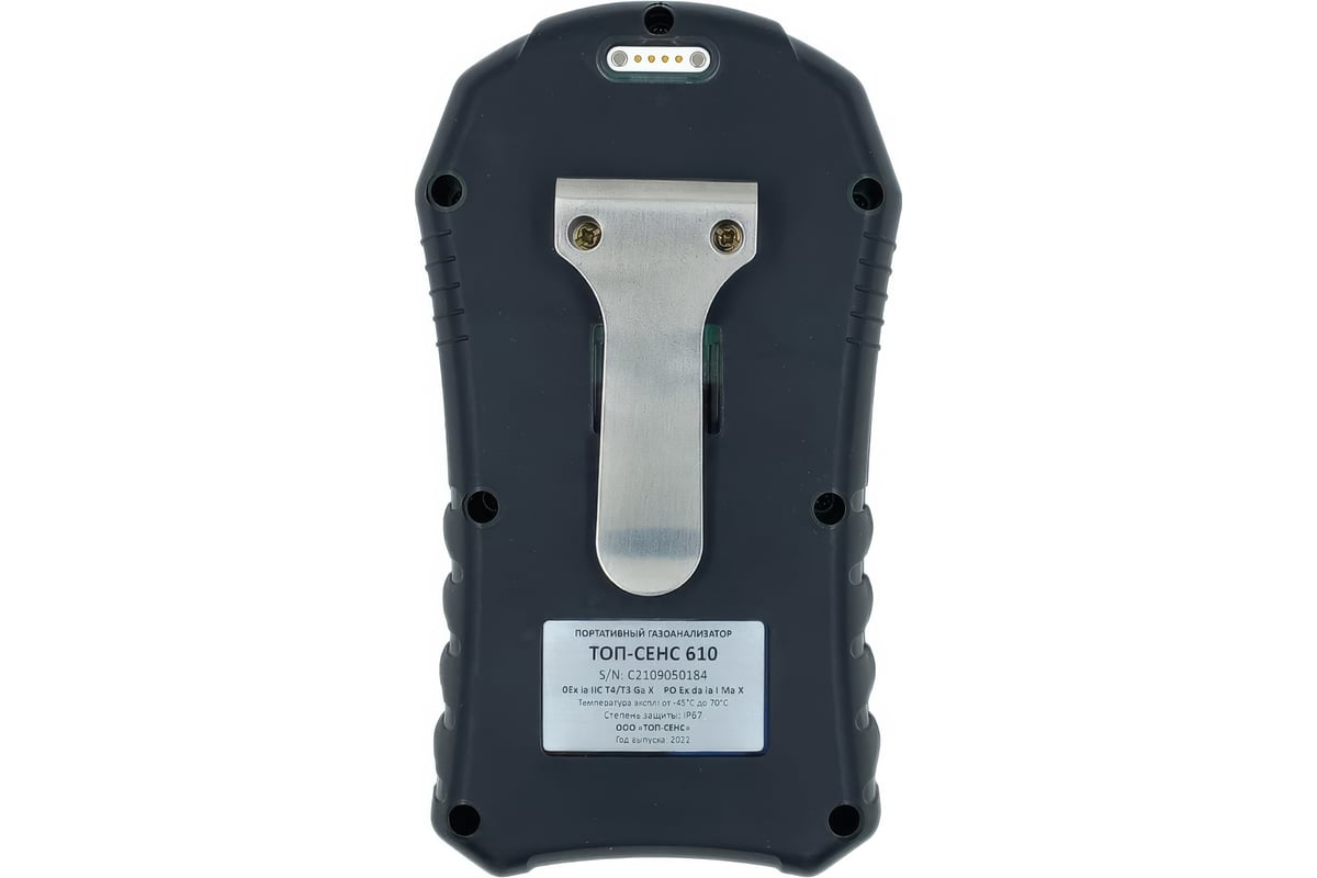 Искробезопасный переносной детектор газа "ТОП-СЕНС 610" (CH4, CH3OH, O2) непрерывно контролирует содержание метана, метанола и кислорода в рабочей среде. Класс взрывозащиты 0Ex da ia IIC T4 Ga X, пылевлагозащита IP67. Архив данных до 10 000 событий. Блокировка паролем для предотвращения неправильных действий. Возможность замены сенсоров одного типа газа на другой за счёт сенсорных модулей. 32-разрядный микроконтроллер с низким энергопотреблением.