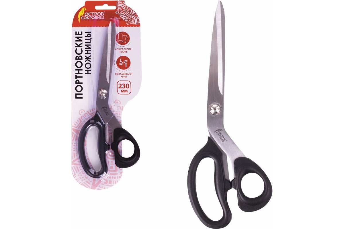 Портновские ножницы ОСТРОВ СОКРОВИЩ КЛАССИК 230 мм, черные, блистер 237452