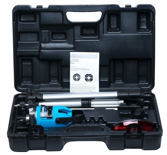Построитель лазерных плоскостей INSTRUMAX Mark 2D IM0101 используется как внутри помещения, так и на улице. Он проецирует 2 вертикальные и 1 горизонтальную линии, а также точку отвеса. Максимальная дальность построения луча составляет 20 м, а с приемником - 70 м. Посредством мембранной клавиатуры осуществляется выбор проецируемых плоскостей и режима работы - с приемником или без. В комплекте идет штатив, который регулируется по высоте, поэтому прибором удобно выравнивать положение как высоко, так и низко закрепленных объектов. Модель работает от 3 батареек, а также можно подключать её к электросети через зарядное устройство (в таком случае батарейки необходимо извлечь).