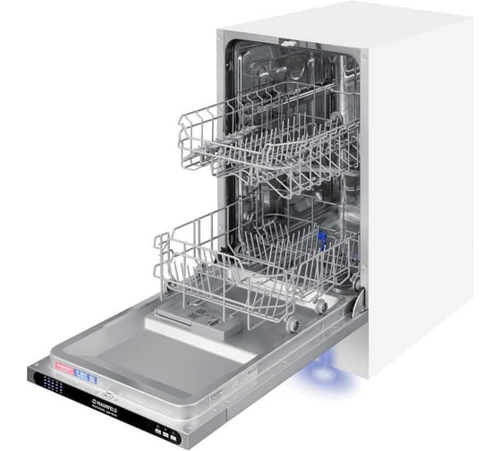 MAUNFELD MLP4529A01 Light Beam— это узкая модель, шириной 45 см (вместо классических 60 см), но весьма вместительная. За раз она может вымыть сразу много посуды, до 9 комплектов — это оценят в больших семьях, а также те, кто любит готовить, часто принимает гостей.