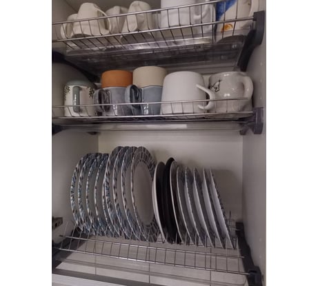 Нормальное сушило. Ну может тонковата проволока. Но тарелки не падают, всё держится. Этот комплект нижняя и средняя. Для тарелок 19 мест, на одно больше, чем в старой
