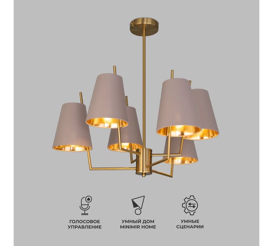 Организовать качественное освещение вам поможет классическая потолочная люстра с тканевыми абажурами 8 штук в коричневом цвете. Простые минималистичные формы и сдержанные тона станут прекрасным дополнением для вашего интерьера.