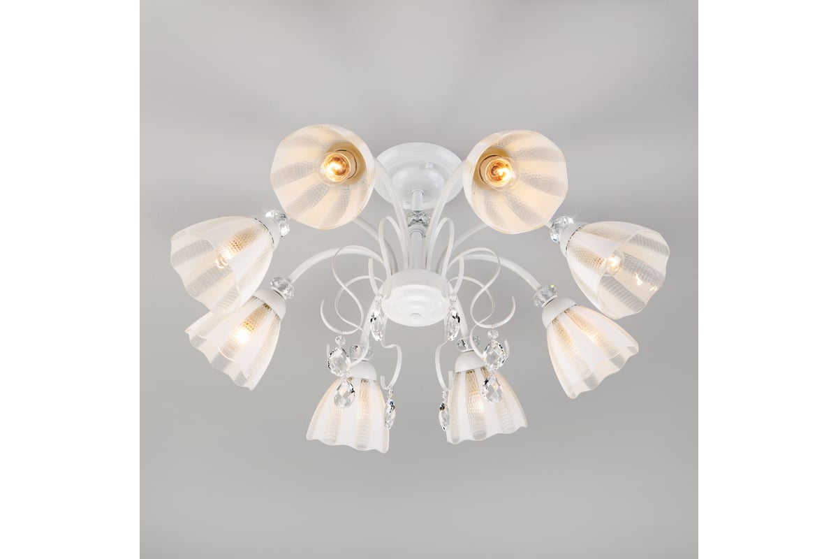 Потолочная люстра с плафонами 30155/8 в белом цвете предназначена для создания основного освещения в современных и классических интерьерах, подходит для различных типов помещений: гостиная; спальня и рассчитана на площадь освещения 36 м².