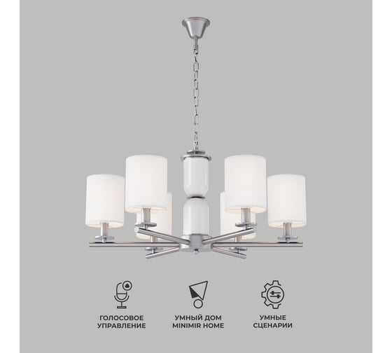 В люстре рекомендуется использовать сменные лампы накаливания с цоколем Е14 с максимальной мощностью 40 Вт. В производстве люстры использовали высококачественный метал с надежным защитным покрытием и закаленное стекло.