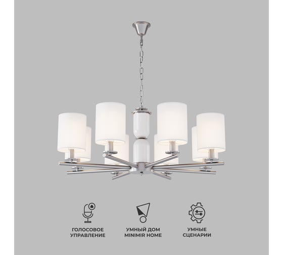 В люстре рекомендуется использовать сменные лампы накаливания с цоколем Е14 с максимальной мощностью 40 Вт. В производстве люстры использовали высококачественный метал с надежным защитным покрытием и закаленное стекло.