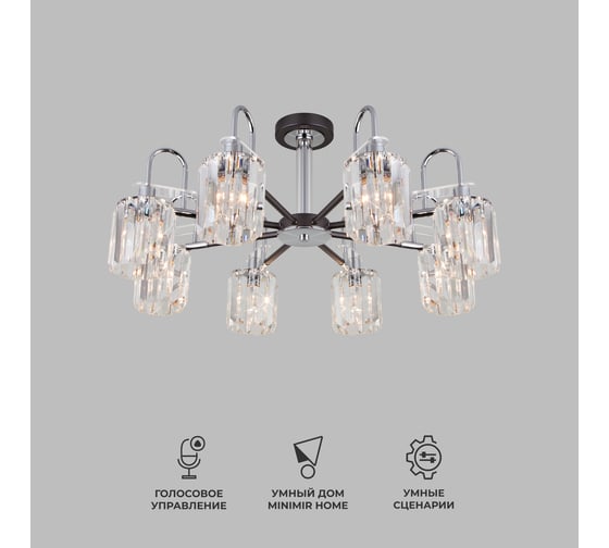 Преобразить ваше потолочное пространство и организовать качественное освещение на площади 36 м кв. поможет стильная люстра в стиле loft. Строгий внешний вид, простота форм, изысканность хрусталя внесут в современный интерьер индустриального стиля и роскоши, а гармоничный цвет графита подчеркнет его.