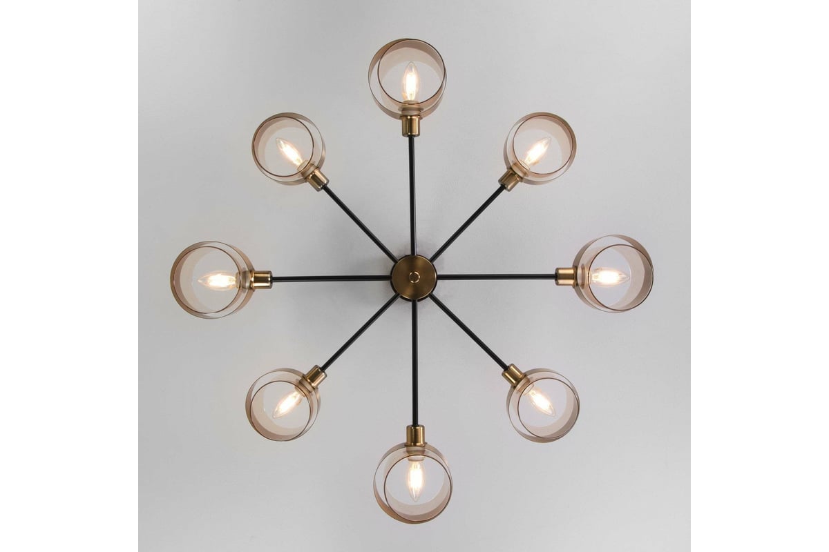 Все характеристикиПотолочная люстра в стиле лофт 70127/8 черный, поможет преобразить ваше потолочное пространство и организовать качественное освещение на площади 32 м кв. Строгий внешний вид и конструктивная простота форм привнесут в современный интерьер индустриальный стиль, а гармоничный цветовой тандем из черного и медного подчеркнет его.