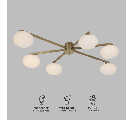Организовать качественное освещение вам поможет эффектная потолочная люстра со стеклянными плафонами в цвете латунь. Простые эргономичные формы и умеренные тона станут прекрасным дополнением для вашего интерьера.