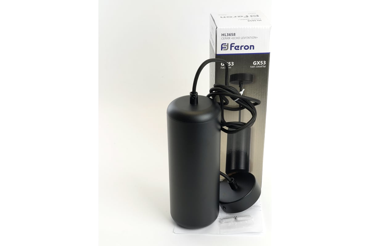 Вопросы и ответы о светильнике FERON hl3658 barrel echo levitation 12w, 230v, gx53, чёрный, с антибликовой сеточкой, на подвесе 1,7 м, 48403
