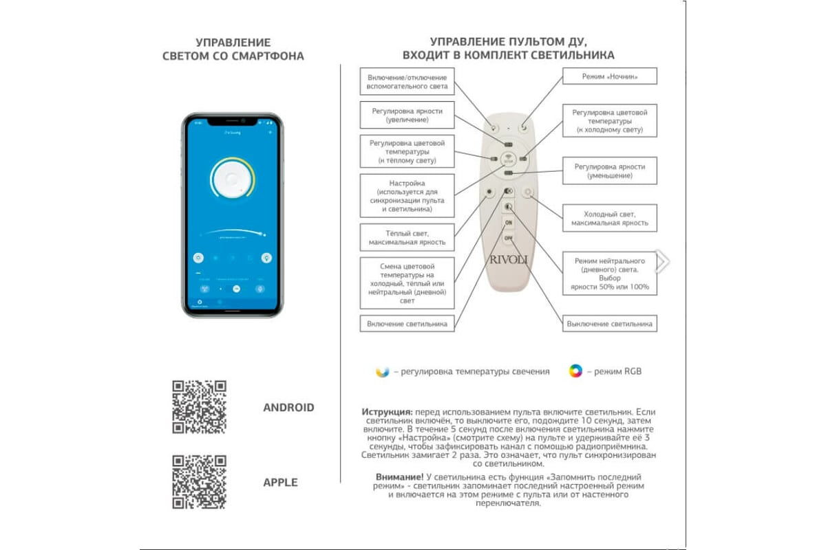 Вопросы и ответы о светильнике Rivoli Hilde светодиод с пультом 140 Вт 3000К-6000К модерн 6084-105 Б0052656