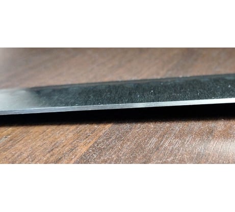 Заточка. Купил после того, как взял на пробу аналогичный нож этой же компании (Код товара 20733693). Но там я сильно промахнулся, не посмотрев на размер. Вообще-то, я не повар, в ножах не сильно разбираюсь. Конкретно этот привлёк выемками на полотне ножа. Логика подсказывает (пока не проверял на практике), что они предотвращают прилипание отрезаемых кусков овощей, что регулярно подбешивает. Вроде, отрезал, но теперь ещё надобно то, что отрезал, как-то отлепить, оторвать от ножа 🤣 Время покажет, работает ли это предположение )))) Но режет отлично, как и тот нож, который я купил по ошибке.