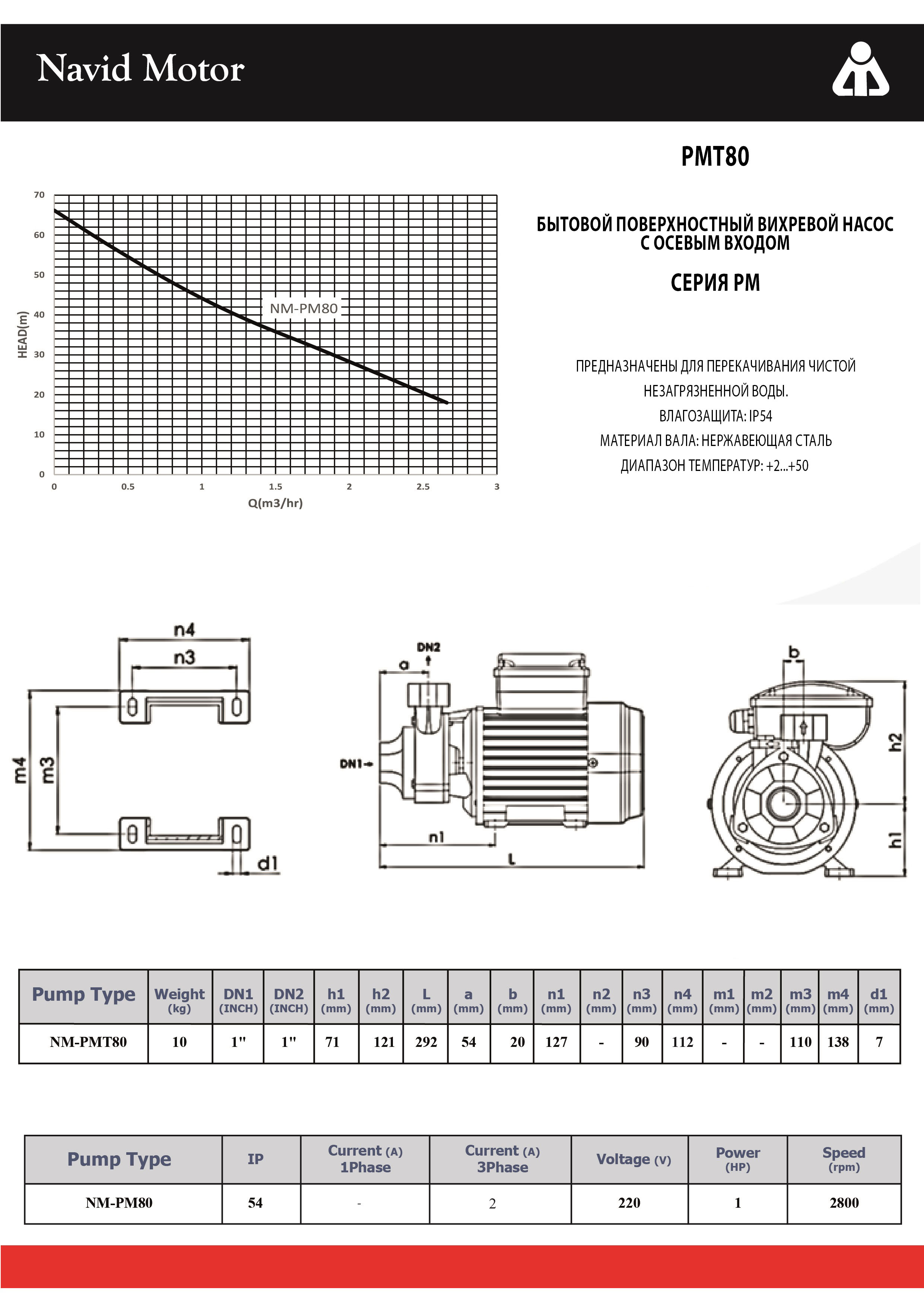 Поверхностный вихревой насос NAVIDMOTOR PMT 80 дв 0,75 квт 380В