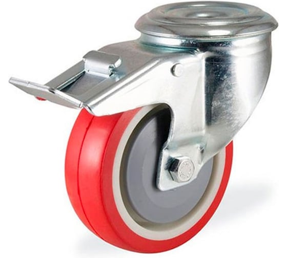 Поворотная колесная опора под болт с тормозом KAMA,80 мм, 3300-PUR-080-F18