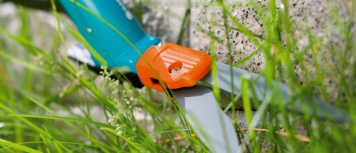 - Ножевая опора Позволяет делать точный и чистый срез по всей длине лезвия – это обеспечивает качественную стрижку травы