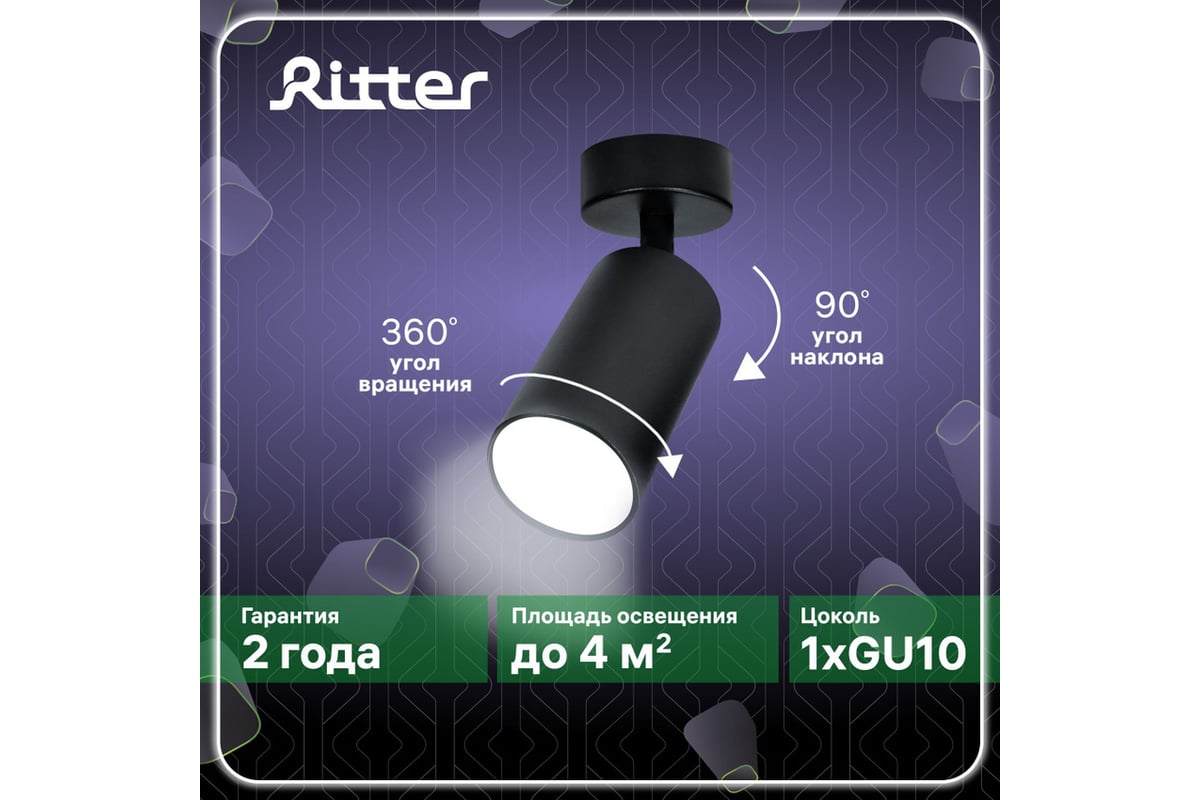 Вопросы и ответы о светильнике RITTER Arton цилиндр, 55x100, GU10, алюминий, черный 59965 4