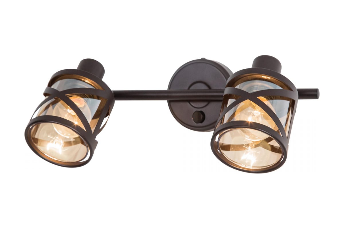 Настенный светильник Citilux Гессен CL536625 с двумя поворотными плафонами выполнен в популярном стиле лофт. Корпус металлический, коричневого цвета. Плафоны из прозрачного стекла светло-янтарного оттенка, украшены винтажным металлическим декором.