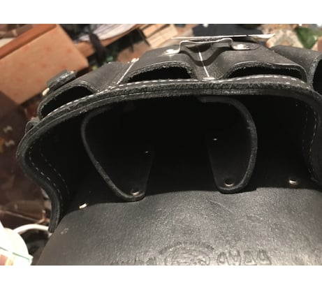 Сумка очень ИНТЕРЕСНАЯ.Подойдёт не для всех,а для эстетов.Кожа натуральная,крепкая,отличная.Немного маловаты карманы спереди,их бы на 5 мм по больше.Но и так в них ножи и мелкие предметы лежат хорошо.Остальные карманы вместительные,можно положить всё что надо.Размер сумки самое то.Весит на ремне отлично, не мешается при работе.