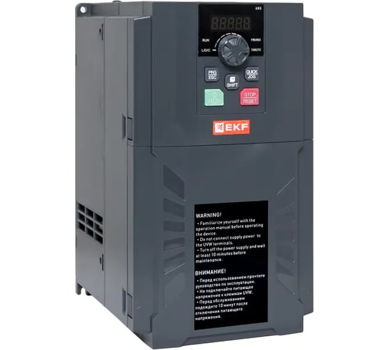 Преобразователь частоты EKF PRO-Drive 150 предназначен для управления скоростью вращения различных электродвигателей, применяемых в широком спектре промышленного оборудования. Преобразователь обладает диапазоном регулирования 1:200 и способен обеспечить точное поддержание скорости вращения или контроль момента на валу двигателя со скростью реакции на внешние факторы не превышающей 40 мс. Преобразователи соответствуют требованиям ГОСТ IEC 61800-5-1, ГОСТ IEC 61800-3.