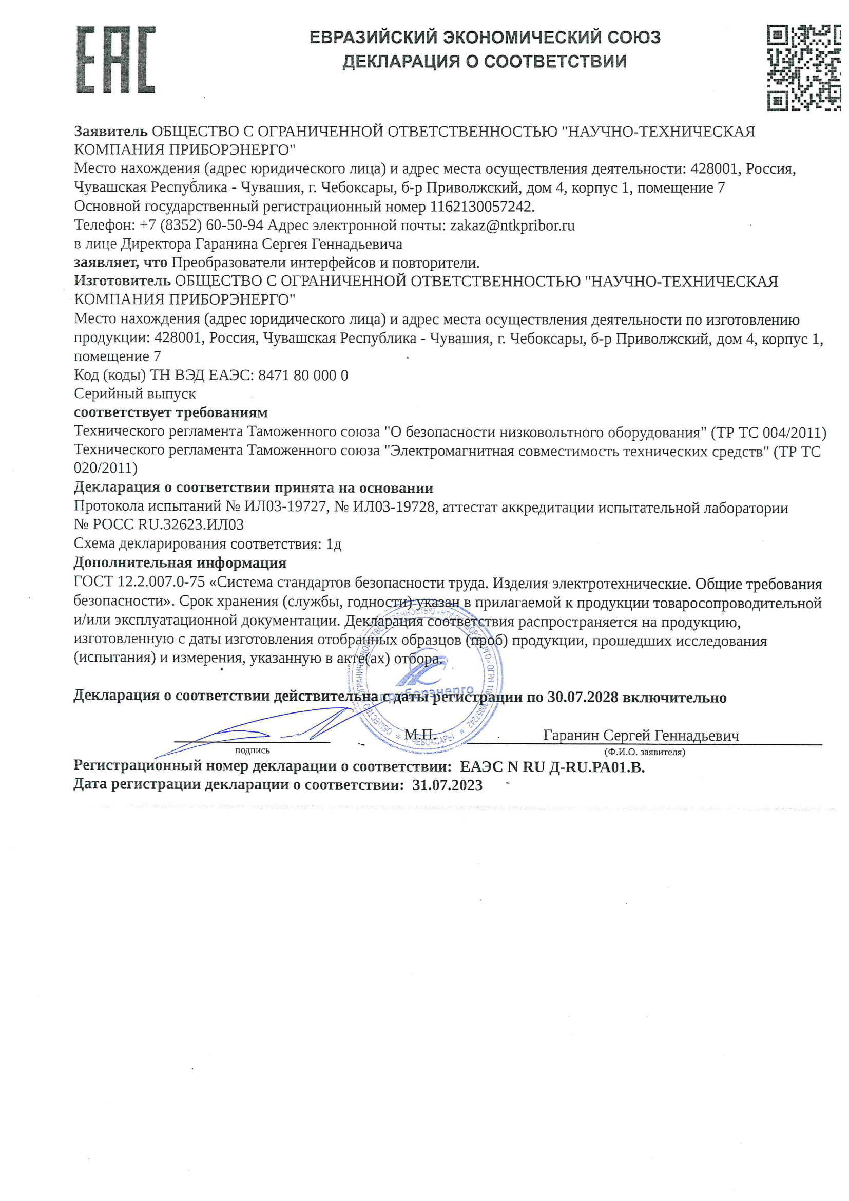 Преобразователь интерфейсов НТК Приборэнерго DCE142 USB-RS485 БП-00005273