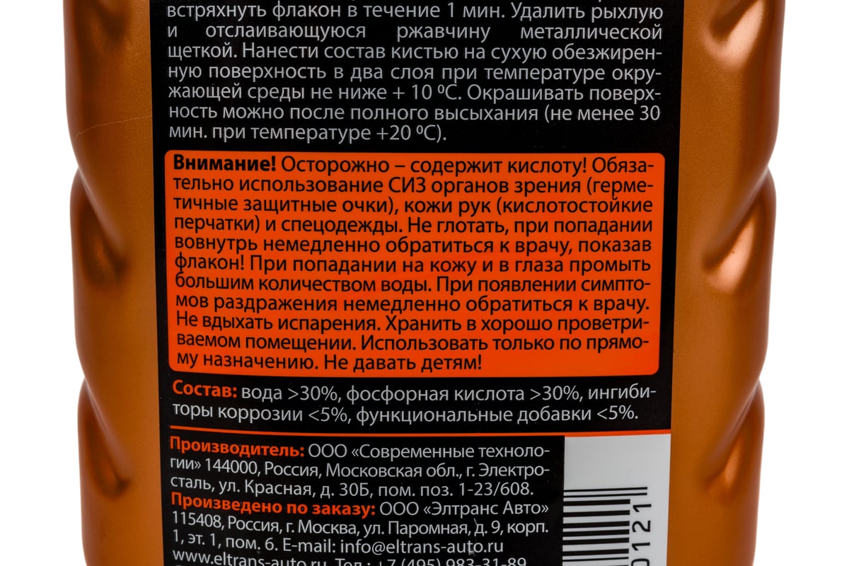 Преобразователь ржавчины ELTRANS ПЭТ флакон, 500 мл EL-0702.04 предназначен для преобразования коррозии на различных поверхностях.