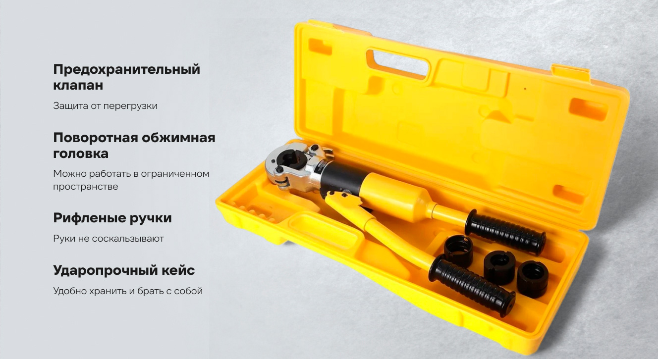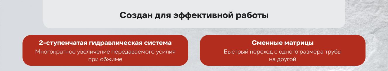 Предназначен для опрессовки пластиковых труб, труб PEX, труб PB с медными фитингами, медными переходниками. Более быстрая работа с меньшими усилиями благодаря двухступенчатой гидравлической системе.