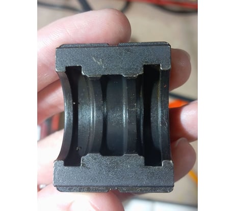 Внимание! Биты на этом инструменте типа профиля "TH". Например, если у вас муфты от фирмы Oventrop, то нужны биты "H". Различие у них в количестве поясов зажима. "TH" делает два жирных пояса (фото профиля прилагаю). А у типа "H" получаются три тонких пояса. Если неправильно выбрать тип профиля для муфты, то соединение со временем начнёт течь.