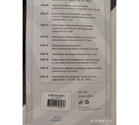 Сопутствующие товары для пресс-клещей КВТ CTB-04 55913