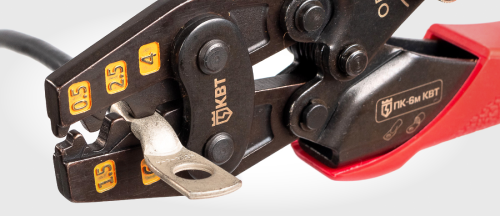 - Универсальный размер 4-позиционные губки позволяют обжимать медные наконечники диаметром от 1,5 до 6 кв.мм