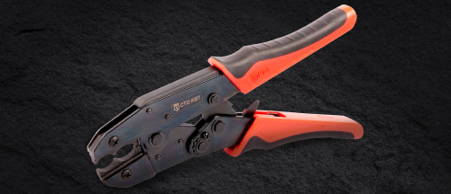 Храповой механизм срабатывает при сжатии рукояток. Он блокирует обратный ход и не позволяет инструменту раскрыться до полной опрессовки наконечника. Усилие прижима матриц КВТ изначально оптимальное, без пережимов и зазоров. Его можно дополнительно отрегулировать, если из-за интенсивной работы в течение долгого времени оно изменится.