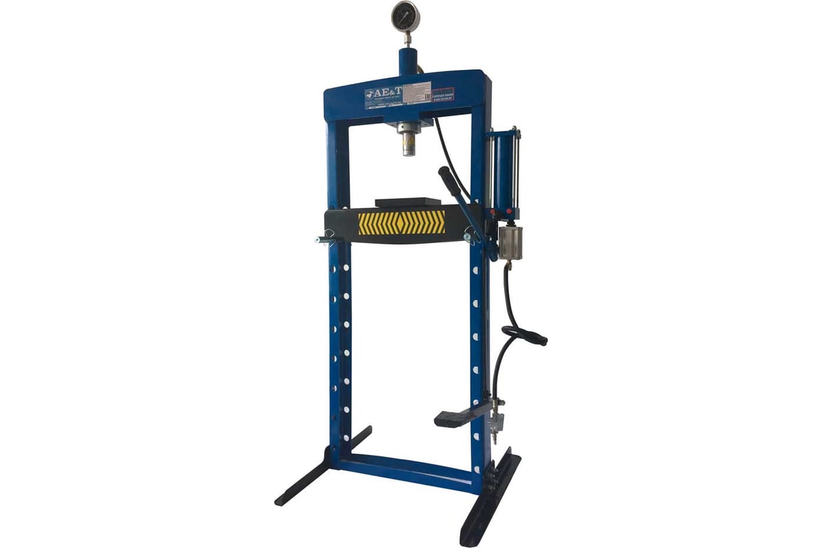 Пресс с ножной педалью и пневмоприводом 20 т AE&T T61220MFA позволяет решать широкий спектр задач без внешнего источника электроэнергии. Модель используется в автомастерских и на станциях технического обслуживания. Специальное покрытие обеспечивает эффективную защиту поверхности рамы от влияния коррозии. Ножная педаль и современный пневмопривод существенно снижают нагрузку на оператора.