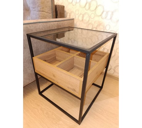 Используем в качестве журнального столика. Стекло даёт ощущение воздушности, удобные ящики-карманы для всякой мелочи.
