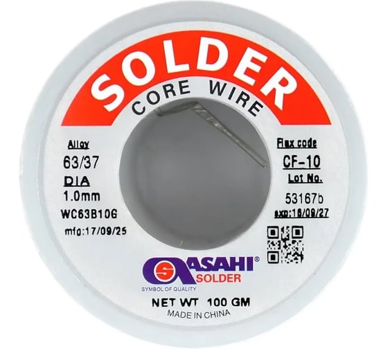 ASAHI 1,0мм 0,1кг Sn63/Pb37 (CF10 флюс RA) припой 00-00016364 - высококачественный припой, широко применяется для пайки и лужения в различных областях.