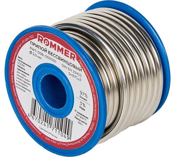 Припой бессвинцовый ROMMER Sn97Cu3 D3.0 250 г RWT-008-000001 PEE9H4F30580LI