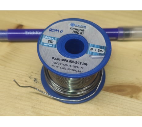 Оловянно-свинцовый припой в проволоке с канифольным флюсом ROM0 средней активности, некоррозионный, активированный. Содержание флюса 2%.