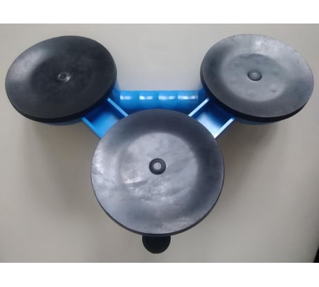 Обычная тройная присоска. Единственное, что стоит упомянуть — так это то, что все резиновые присоски (а не силиконовые, которыми дисплейные модули со смартфонов снимают) следует с силой прижимать к поверхности, прежде чем нажимать на рычаг. Если не прижать, сила присасывания будет не полной — вы поймёте это по относительно лёгкому усилию нажатия на рычаг. Соответственно, в случае с такими домкратами, состоящими из нескольких присосок, подобное нужно проделать с КАЖДОЙ присоской.