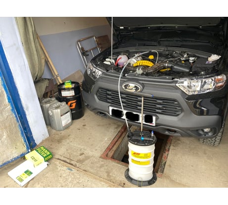 Подключение к компрессору - бесполезная опция. Рабочее разряжение создаётся за несколько качков ручным насосом (встроенным), так что подключение компрессора для создания разряжения - только при промышленной эксплуатации или очень густом масле/жидкости. Также могу отметить факт того, что использование - убивает веру в нормативы, применяемые при обычной замене масла. При обычном заливе при смене 4-х литров - этой конструкцией откачалось почти 5. Залилось, соответственно, тоже почти 5. вот.