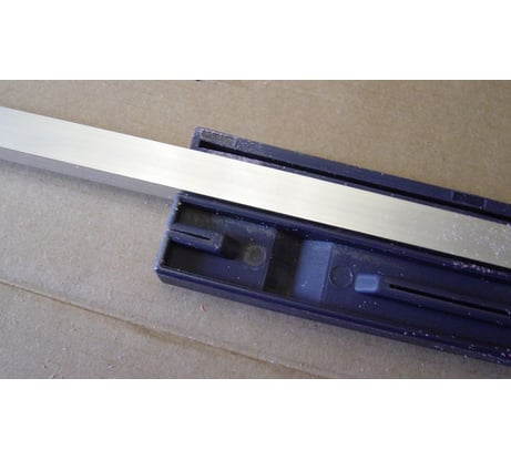 Предназначен исключительно для фирменной шины-направляющей, которая очень дорога и не всем нужна. Однако его можно использовать и с самой простой самодельной направляющей - например с алюминиевым квадратом 10х10 мм, надо только убрать направляющие выступы в пазе резака.