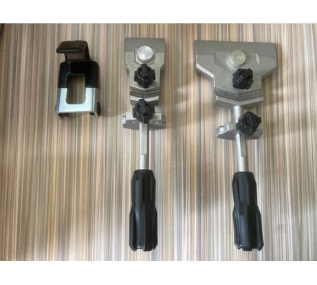 Покупался для работы на Tormek T8. Достойный аналог оригинальному зажиму. Диаметр посадочных отверстий совпадает с универсальной направляющей Тormek.