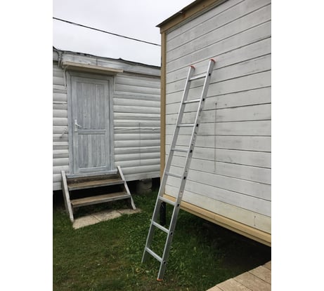 Отличная лестница для гаража и домашнего использования. Долго выбирал между разными брендами и особенностями, покупал под свой вес, с запасом прочности.