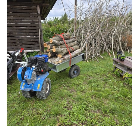 Ведёт винтом кузов при перегрузе но не лопается, ступицы без колпачков , сцепное под мотоблок нева требует подкладывания шайб,